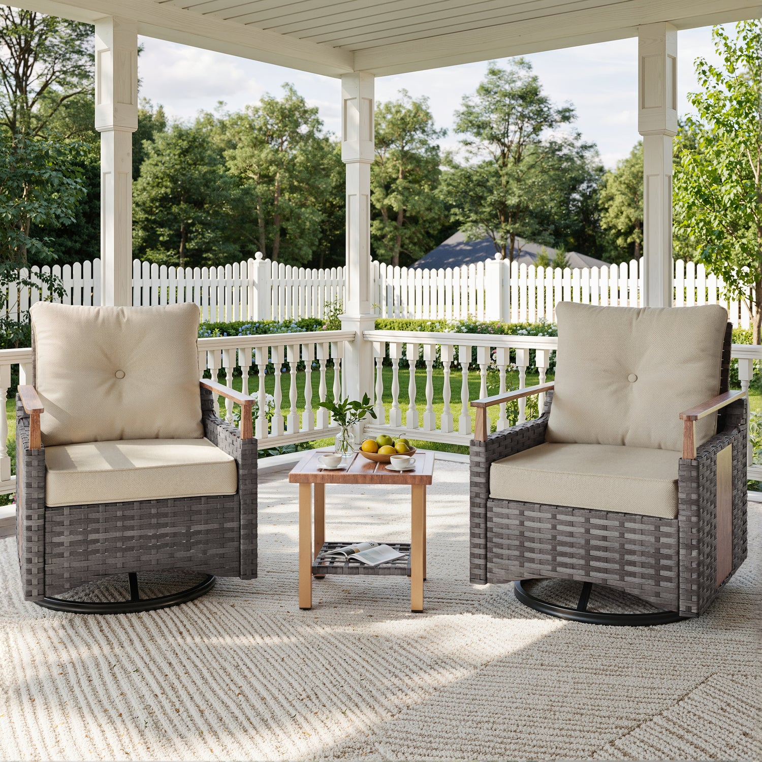 Melvarn 4-Piece Outdoor Wicker Swivel Glider Patio Conversation Sets with Cushions